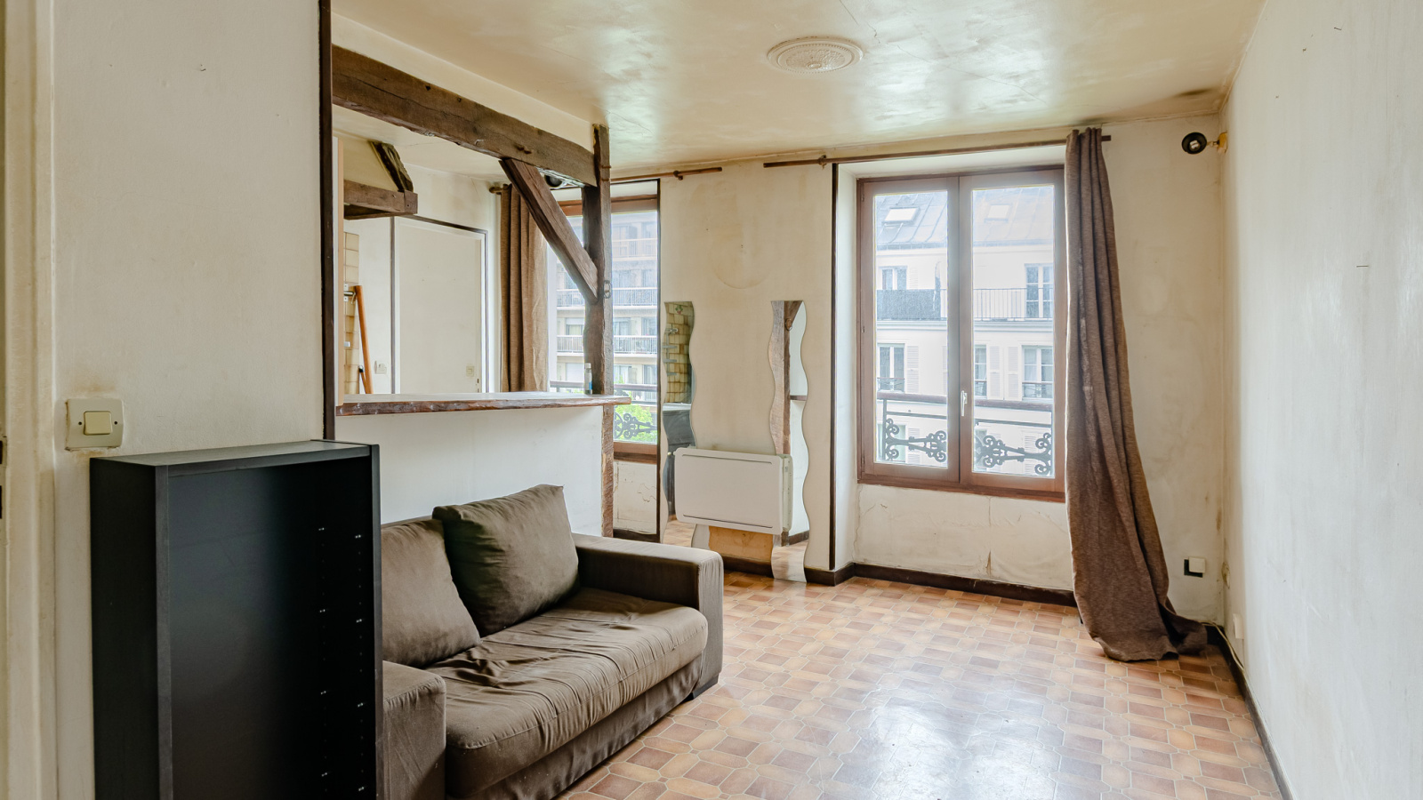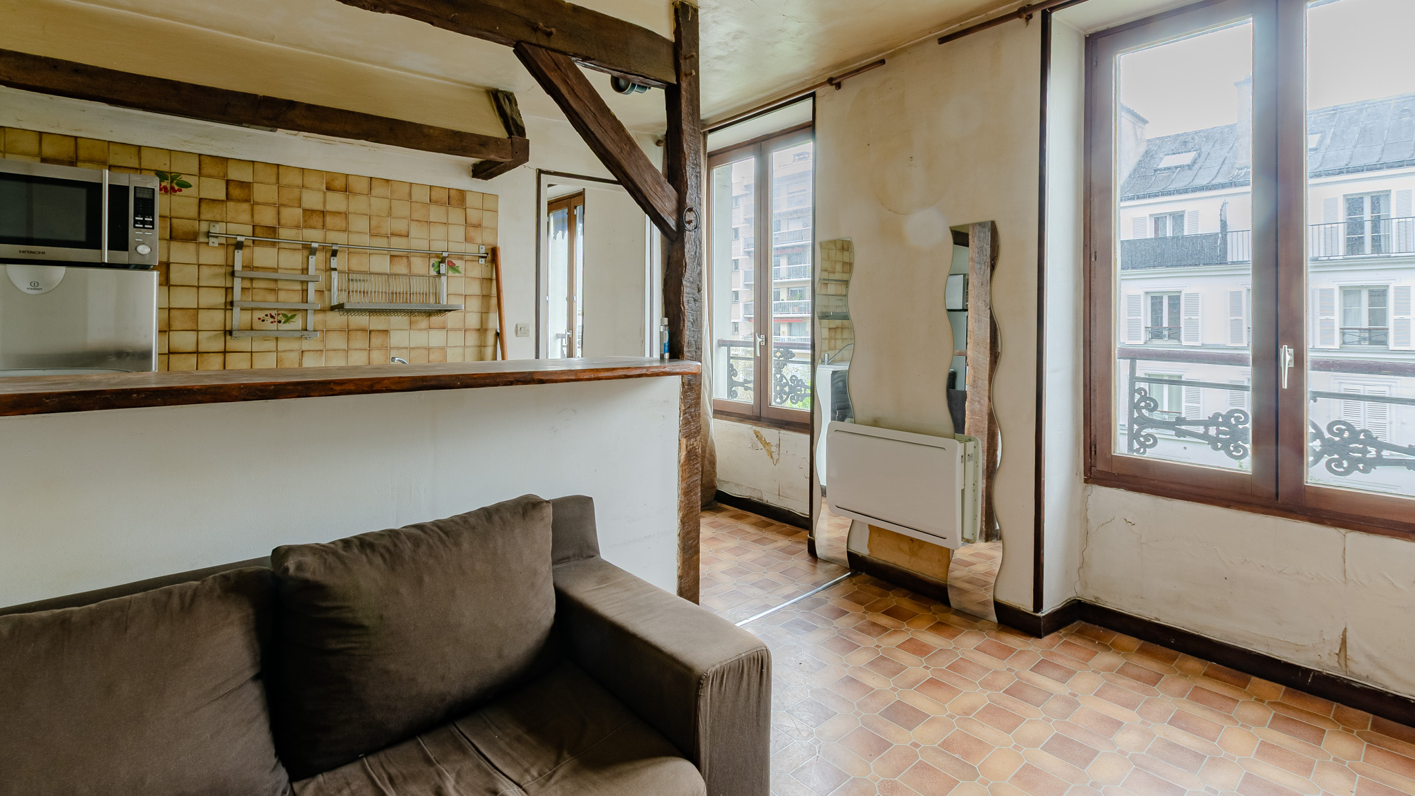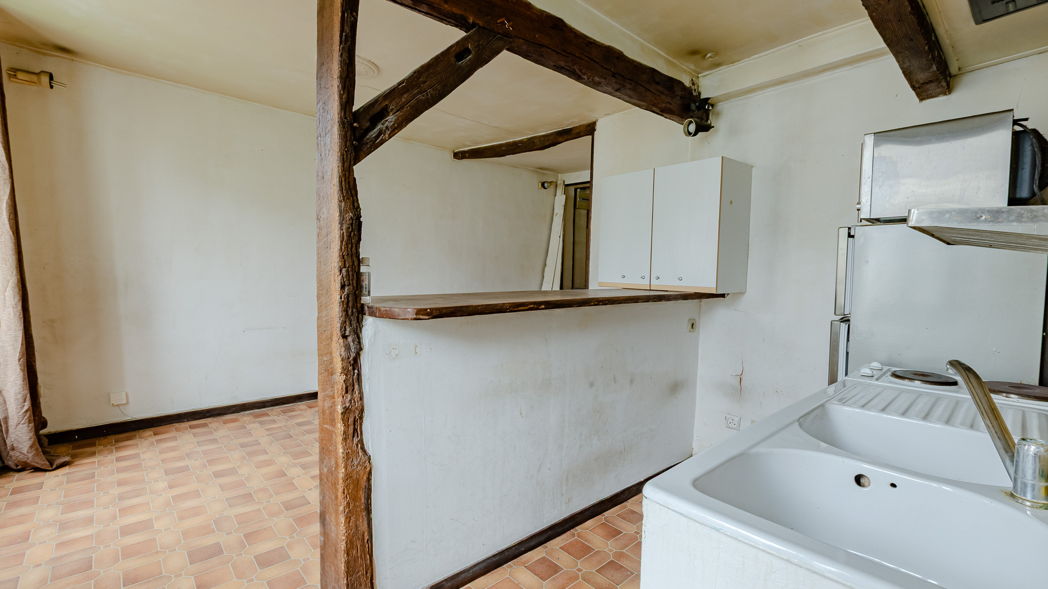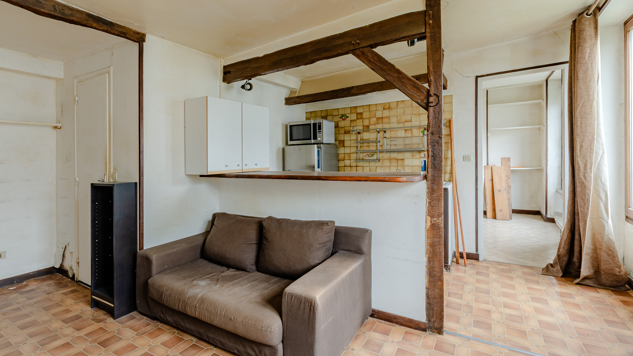 Paris (75010)A VENDRE à Paris, dans le 10ème arrondissement, rue du Faubourg Saint Martin. Au 4ème étage sans ascenseur d'un immeuble ancien, un appartement de 2 pièces de 34,39m² comprenant une entrée, un séjour avec une cuisine ouverte, une salle de bains avec emplacement pour la machine à laver et une grande chambre. Appartement lumineux avec un très bon potentiel. Poutres apparentes. Travaux à prévoir.