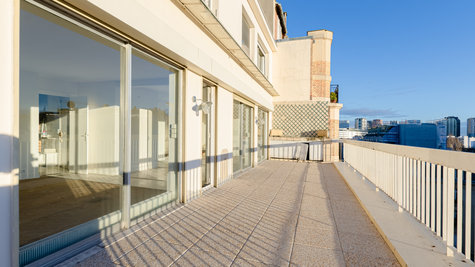 Paris (75016)A VENDRE à Paris dans le 16ème arrondissement, à proximité de la Place Rodin et du métro Ranelagh, rue de l'Assomption. Au 6ème et dernier étage d'un immeuble récent très bien entretenu, un duplex de 125m² comprenant, au 6ème étage, une entrée, un grand double-séjour de 46m² baigné de soleil donnant sur une terrasse de plain-pied de 38m² exposé plein Sud et une grande cuisine dinatoire; au 7ème étage, 3 chambres indépendantes, une salle d'eau, une salle de bains et 2 w.c. Aucun vis-à-vis dans cet appartement traversant. Ensoleillé du matin au soir. Une cave et un petit parking dans l'immeuble complètent ce bien. Travaux à prévoir.
